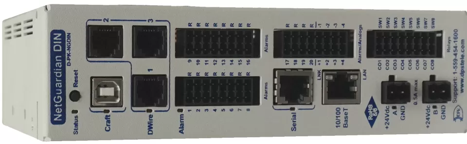 This unit is based on the time-tested NetGuardian design used in other popular, high-capacity models. The NetGuardian DIN is housed in a telco-grade, durable chassis made of aluminum. You can even put the device in a NEMA enclosure for extra durability in harsh environments.