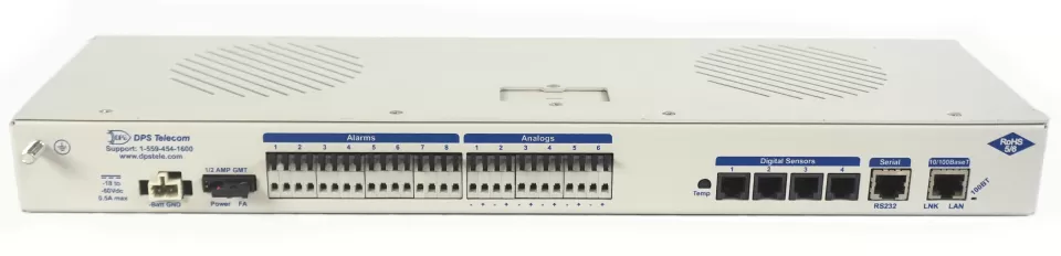 You can use the 8 discrete alarms on the back panel to monitor dry contacts, such as motion sensors, UPS, smoke detectors, flood sensors, AC and room entry. You'll also have dense analog coverage with support for up to 32 D-Wire sensors and 8 analog channels.